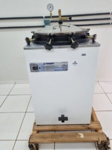 A autoclave vertical é um equipamento para laboratório para a esterilização via calor úmido que trabalha em altas temperaturas e pressão.